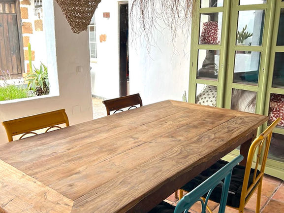 In the characteristic Canarian patio for the exclusive use of the house, there is a large table sheltered from the sun which allows you to enjoy the summer by having lunch and dinner outdoors. The internal patio of the house is romantic for a couple and perfect for children who can play freely outdoors, without going far.